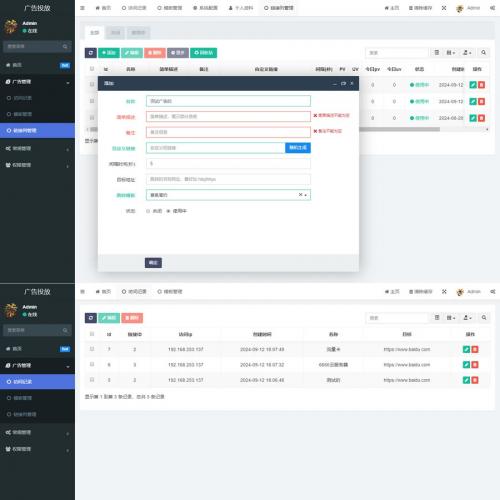 实时监控分析广告数据跳转统计平台系统源码,广告跳转实时分析页面统计系统,可选择生成html页面样式,可自定义设置页面域名后缀,可指定跳转指定网址。