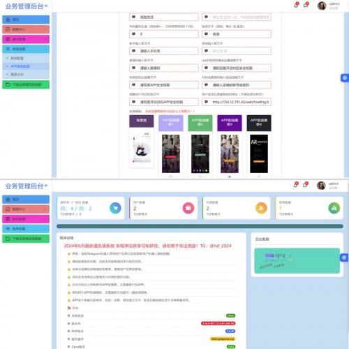 2024最新获取txl通讯录、短信系统,APP支持安卓IOS双端原生源码,拥有自由操作度最好的后台,APP前端样式一键修改。去除过多授权提醒,提高用户信息获取率。优化业务系统后台管理员与代理的操作功能。后台可自行上传和修改APP背景图,无需重新打包APP。拥有四个APP前端模板,无需重新打包即可一键选择替换。APP各个参数自由修改,包括:名称、授权提示文字、登录后跳转网址等十多种参数修改。添加Tg机器人查询用户信息增加获取新用户时Tg机器人通知提醒。适合公司统一管理手机数据使用,不得违法使用。